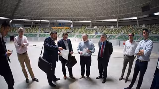 La visita de la ACB dio comienzo con una reunión con la cúpula directiva de la entidad burgalesa, encabezada por su presidente, Félix Sancho. Tras lo cual, se examinaron las instalaciones y las obras de acondicionamiento del Coliseum Burgos, recinto donde el conjunto castellanoleonés disputará sus encuentros el próximo curso y que espera poder acoger a más de 9.000 espectadores.