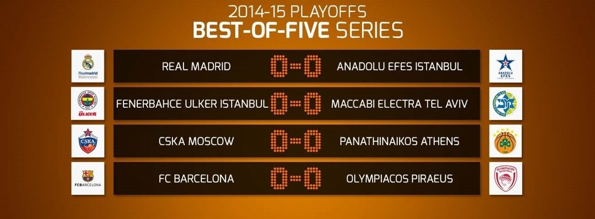 Los 'play-offs', eliminatorias al mejor de cinco encuentros, se disputarán del 14 al 25 de abril y decidirán los cuatro equipos que se medirán en la 'Final Four' de Madrid, del 15 al 17 de mayo. Además de los cruces con presencia española, completan los 'play-offs' el Fenerbahce-Maccabi y CSKA Moscú-Panathinaikos.