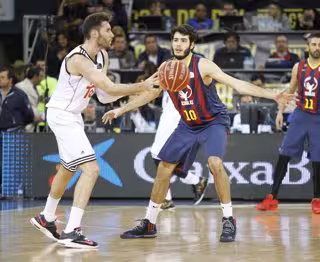El conjunto catalán estuvo mejor en la primera mitad. Los puntos de Satoransky y Tomic (13 puntos, 7 rebotes y 22 de valoración al descanso), sumados a la buena defensa culé manejaron el duelo sin poder eso sí distanciarse de los blancos a pesar de tener la opción de +10. Laso, con el segundo parcial ya en el tramo final, pidió seriedad y trabajo a los suyos en defensa y de la mano de Rudy Fernández el Madrid dio un estirón final para llegar al descanso igualados (42-41).