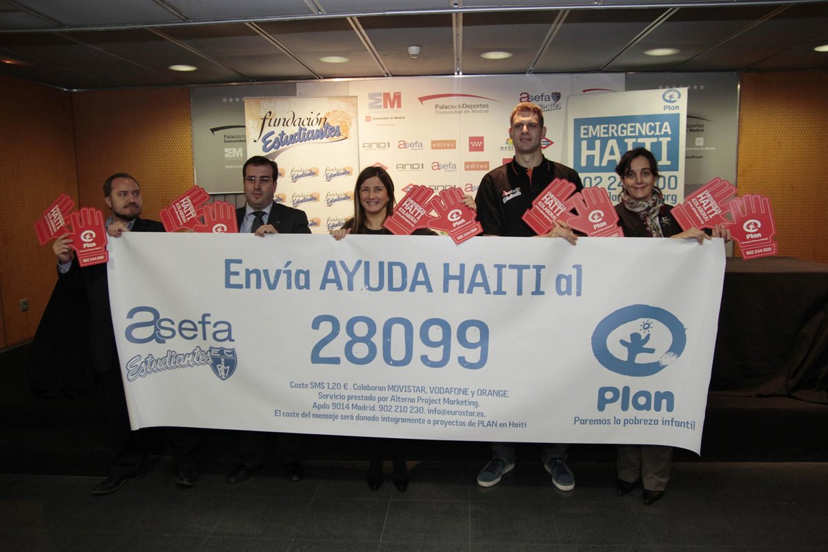 De esta forma, la plantilla del Asefa Estudiantes portará mañana ante el Assignia Manresa, en partido de Liga ACB, una pancarta con el número '28099' al que se puede enviar un SMS con la palabra 'haiti' para donar una pequeña cantidad que irá destinada al pueblo haitiano.