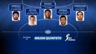 Juan Carlos Navarro (FC Barcelona Regal), Justin Doellman (Valencia Basket Club), Andrés Rodríguez (Blusens Monbus), Jakim Donaldson (CB Canarias) y Fernando San Emeterio (Caja Laboral) han sido elegidos como el 'Mejor Quinteto Liga Endesa' de la jornada 15 del torneo.