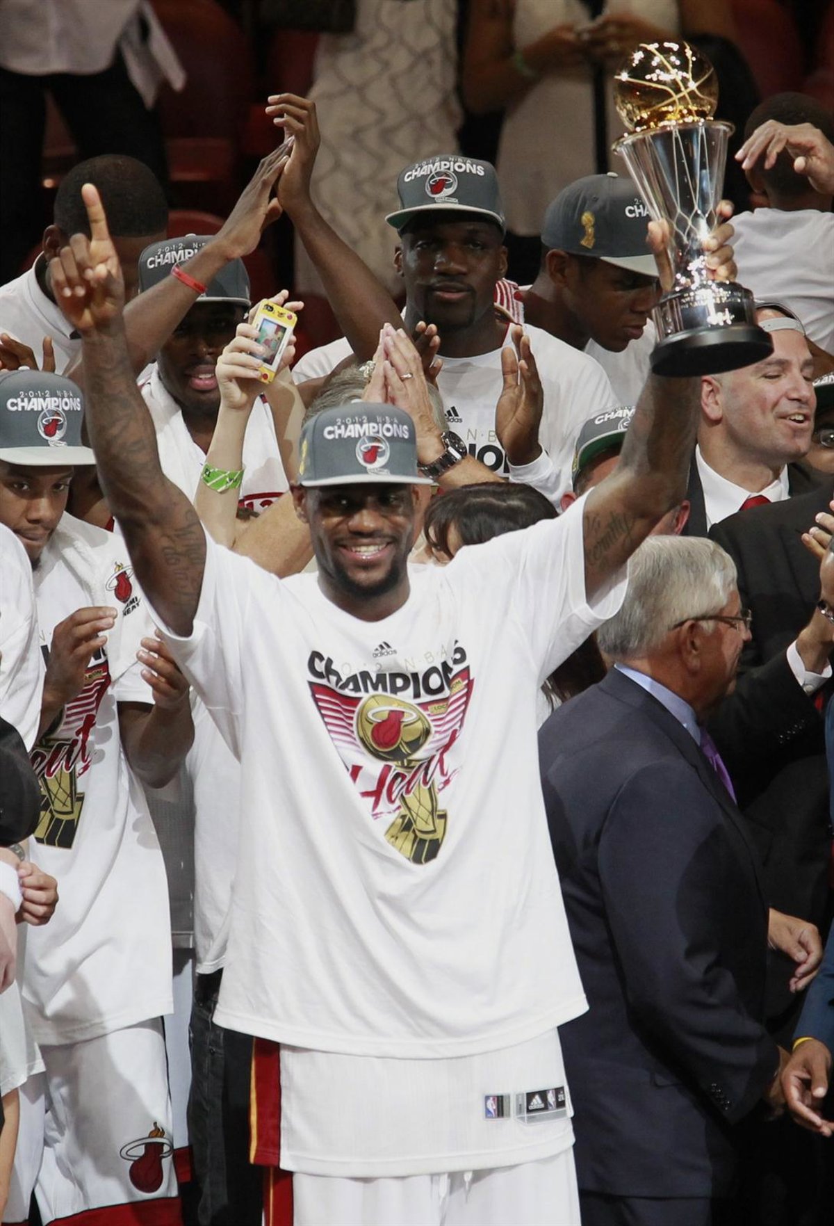 James rompió su maldición con las finales y ganó a la tercera el anillo, tras haber perdido dos títulos anteriormente, con Cleveland en 2007 frente a San Antonio Spurs y en los Miami Heat el pasado año cayendo en la final frente a los Mavericks del alemán Dirk Nowitzki, apuntando que "perder el título el año pasado le puso de nuevo en su lugar, le dolió mucho".