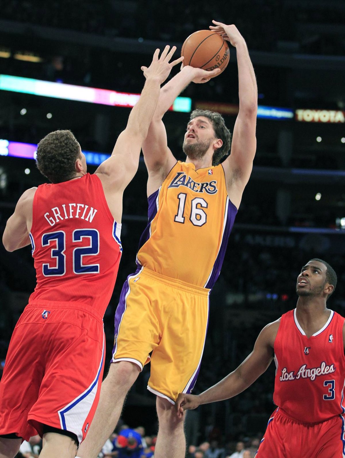 Los Angeles Lakers, de la mano de un inspirado Pau Gasol, que firmó un nuevo 'doble-doble', se hicieron con el triunfo en el derbi angelino (96-91) ante los Clippers en un espectacular encuentro disputado en el Staples Center y rompieron la preocupante racha de tres derrotas consecutivas.