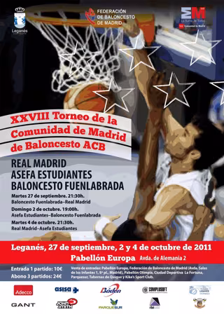 El calendario del torneo con los tres conjuntos madrileños, que representarán un año más a la Comunidad de Madrid en la Liga ACB, es el siguiente: Real Madrid y Alta Gestión Fuenlabrada disputan el primera partido el día 27 de septiembre, a las 21:30 horas, en el ya citado Pabellón Europa de Leganés; el domingo, 2 de octubre, a las 19:00 horas, se enfrentarán el Asefa Estudiantes contra el Alta Gestión Fuenlabrada; y, el tercer partido, el martes 4 de octubre, a las 21:30 horas se celebrará entre el Real Madrid y Asefa Estudiantes.