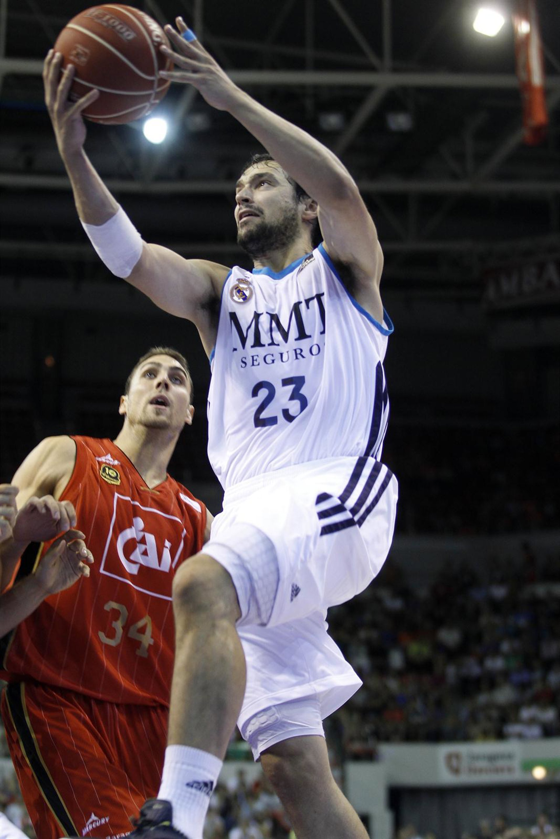 Tras la reanudación, el CAI llevó el ritmo del duelo ante un Real Madrid espeso en ataque, atrapado en la buena defensa local. El desacierto en ambos equipos fue el protagonista del tercer cuarto, en el que se puso en evidencia las alturas de temporada. No obstante, un mate de Rudy Fernández y una canasta de Sergio Rodríguez puso a los de Laso once puntos arriba (33-44, min 25). El 'Chacho' destapó el tarro de las esencias y dirigió con maestría la escapada madridista. Mientras, los de José Luis Abós comenzaron a acusar el cansancio.