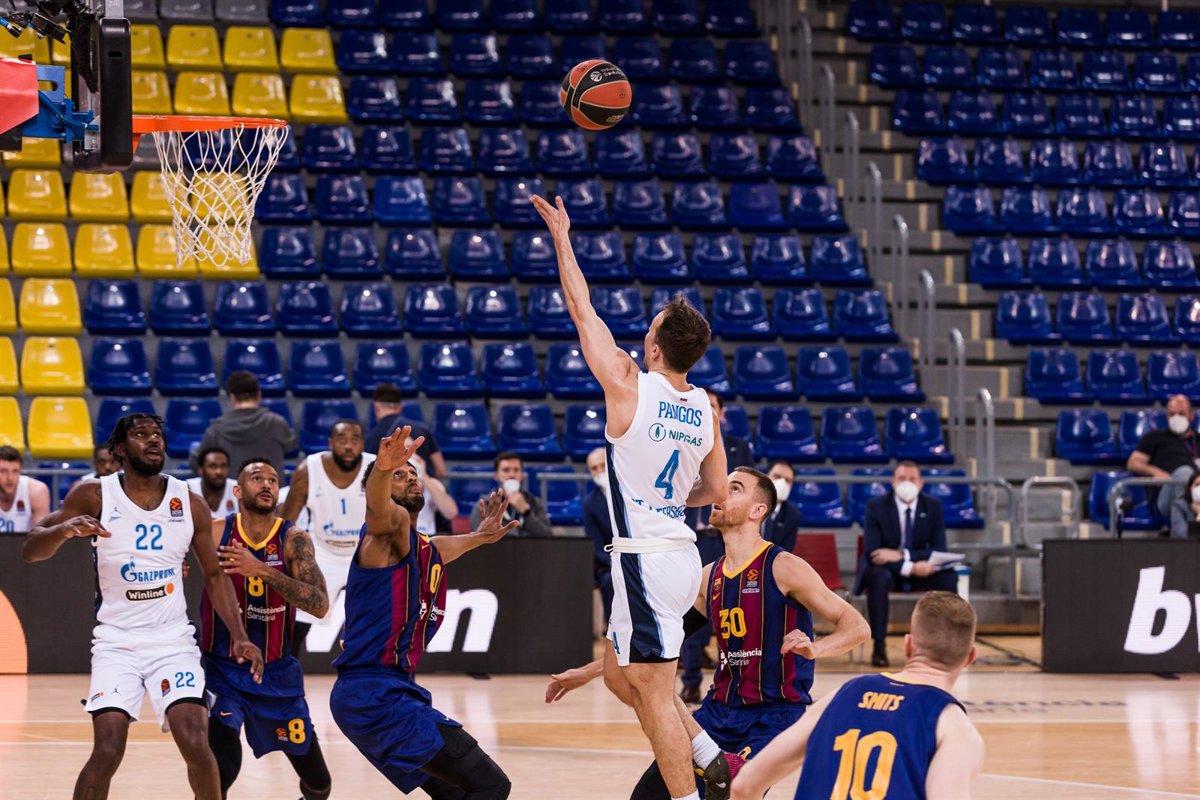 Kevin Pangos of Zenit St. Petersburgo shoot to basket during the Turkish Airlines EuroLeague PlayOffs game 2 match between FC Barcelona and Zenit St. Petersburgo at Palau Blaugrana on April 23, 2021 in Barcelona, Spain. - Javier Borrego / AFP7 / Europa Press