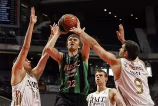 Por su parte, el Real Madrid cerró la fase Regular de la Liga Endesa con una victoria ante el FIATC Joventut (95-82), por lo que termina segundo con 26 victorias y ocho derrotas, y que espera rival del trío formado por el Lagun Aro, Banca Cívica y Lucentum Alicante para la primera ronda de los 'play-offs' por el título. Los hombres más destacados del encuentro fueron Jaycee Carroll, con 20 puntos, y Sergio Rodríguez, con 16, que se lucieron ante la atenta mirada de Rudy Fernández que vio el encuentro de sus excompañeros en la grada del Palacio.