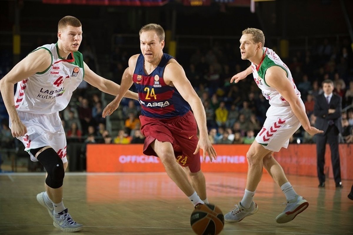 FC BARCELONA LASSA: Satoransky (8), Doellman (5), Navarro (-), Perperoglou (10) y Tomic (6) --cinco inicial--; Ribas (4), Lawal (6), Abrines (21), Vezenkov (6), Samuels (4) y Oleson (8).