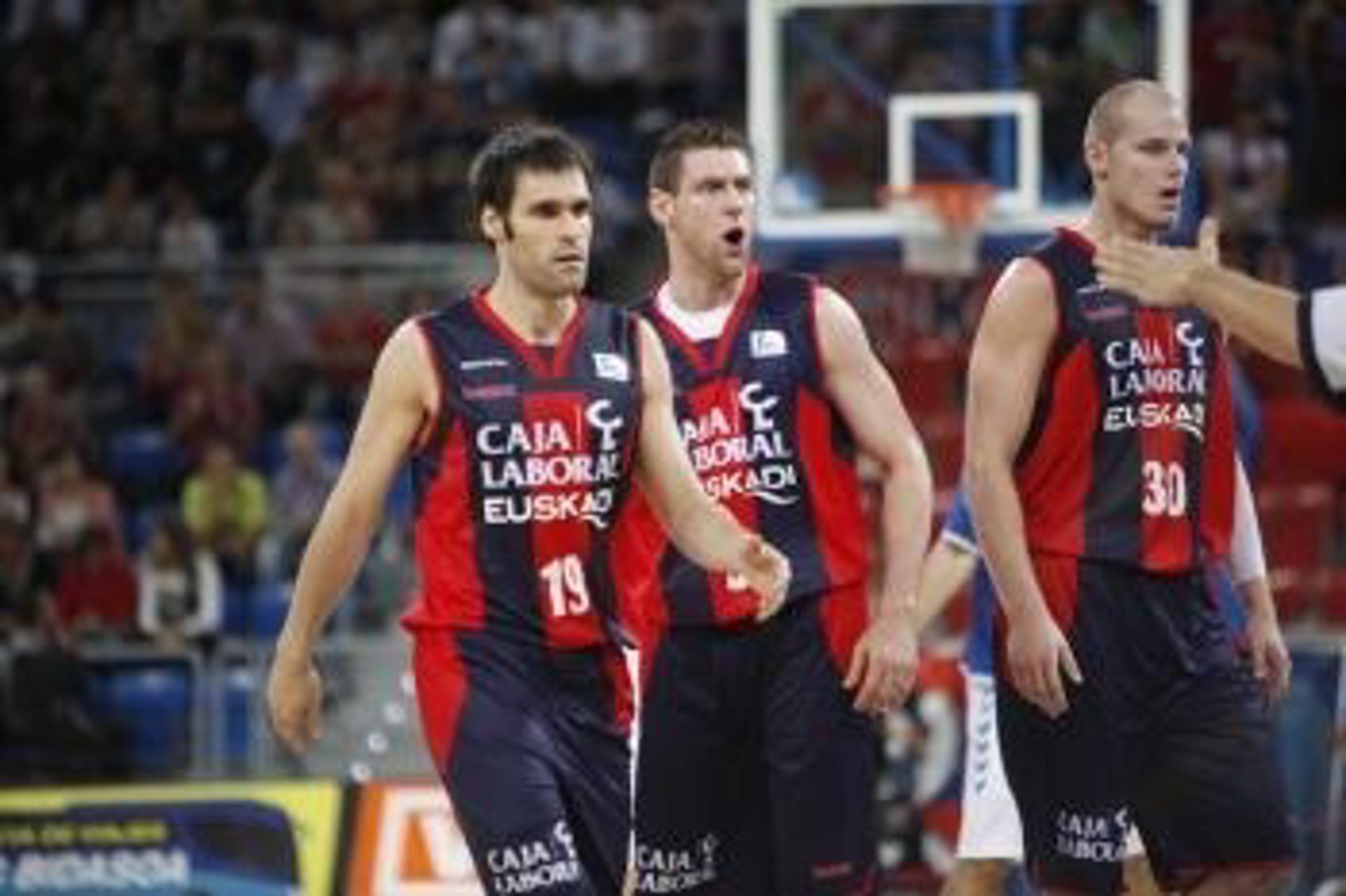 CAJA LABORAL: Heurtel (11), Oleson (6), Nocioni (8), Milko Bjelica (4) y Lampe (14) --quinteto inicial-- Cabezas (2), San Emeterio (17), Nemanja Bjelica (2), Pleiss (-) y Causeur (-).