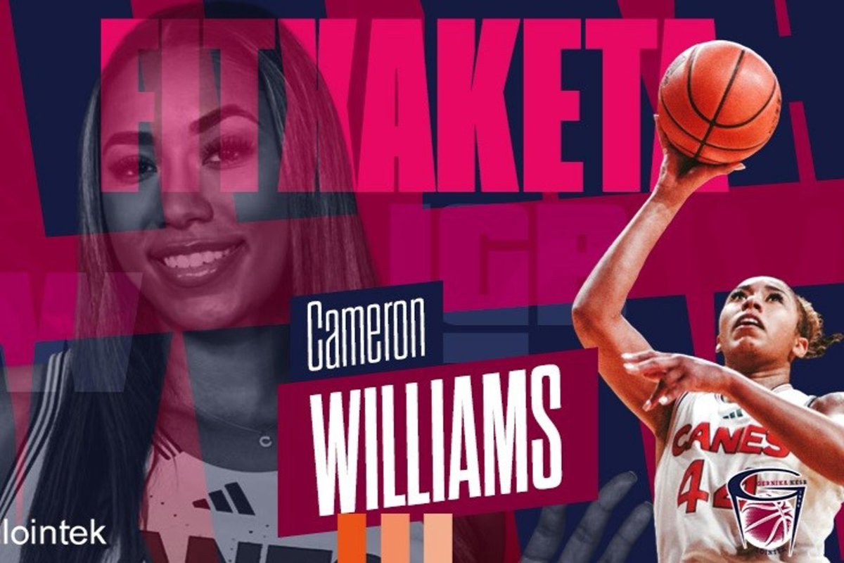 Nacida el 15 de noviembre de 2001 en Chicago (Illinois), proviene de la Universidad de Miami Hurricanes y en el último curso promedió 11,7 puntos y siete rebotes por partido, con un 58,6% en tiros de campo. El club gernikarra cuenta así con Laura Westerik, Ane Olaeta, Naia Zubiaga, Ángela Salvadores, Emily Bessoir, Esther Castedo, Masa Jankovic, Joy Adams, Sarah Polleros, Esther Matarranz y la propia Cameron Williams.