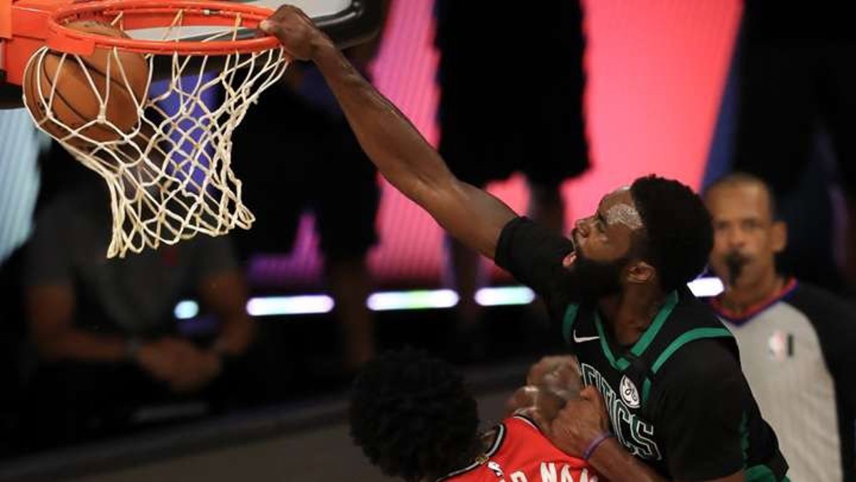 Jaylen Brown machaca el aro en el quinto partido entre Boston Celtics y Toronto Raptors - GETTY IMAGES