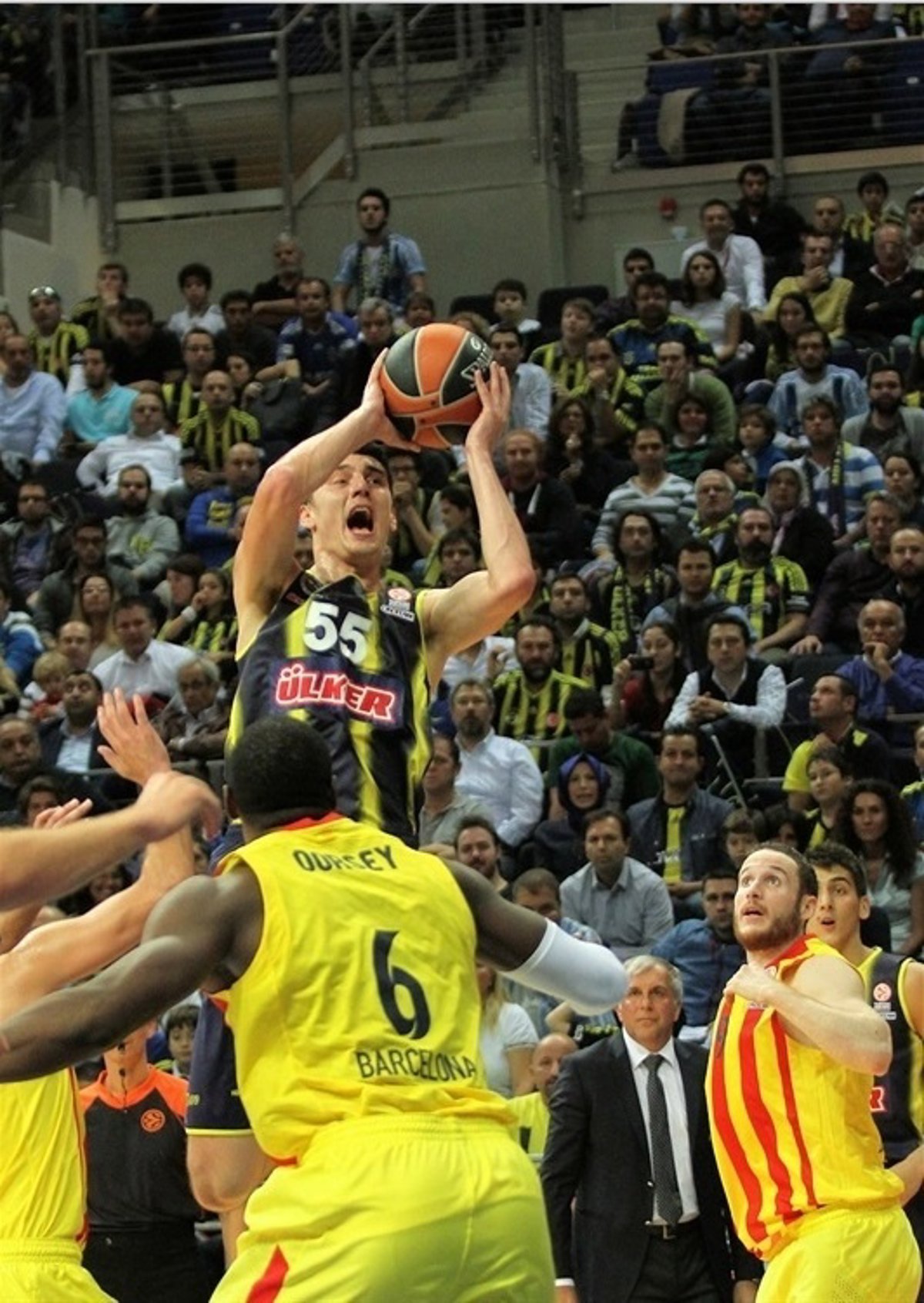 No se encontraron cómodos en ningún momento los blaugranas cuando tocaba hacerlo en un Ülker Sports Arena lleno y que caldeó el ambiente. Empezaron con mal porcentaje desde los 6,75 metros y, lejos de mejorar, esta tónica se mantuvo todo el partido y, por contra, el Fenerbahçe martilleó desde esta distancia y también en la pintura el aro catalán, sobre todo con un gran protagonismo de Linas Kleiza, el mejor e imparable, y Luka Zoric.