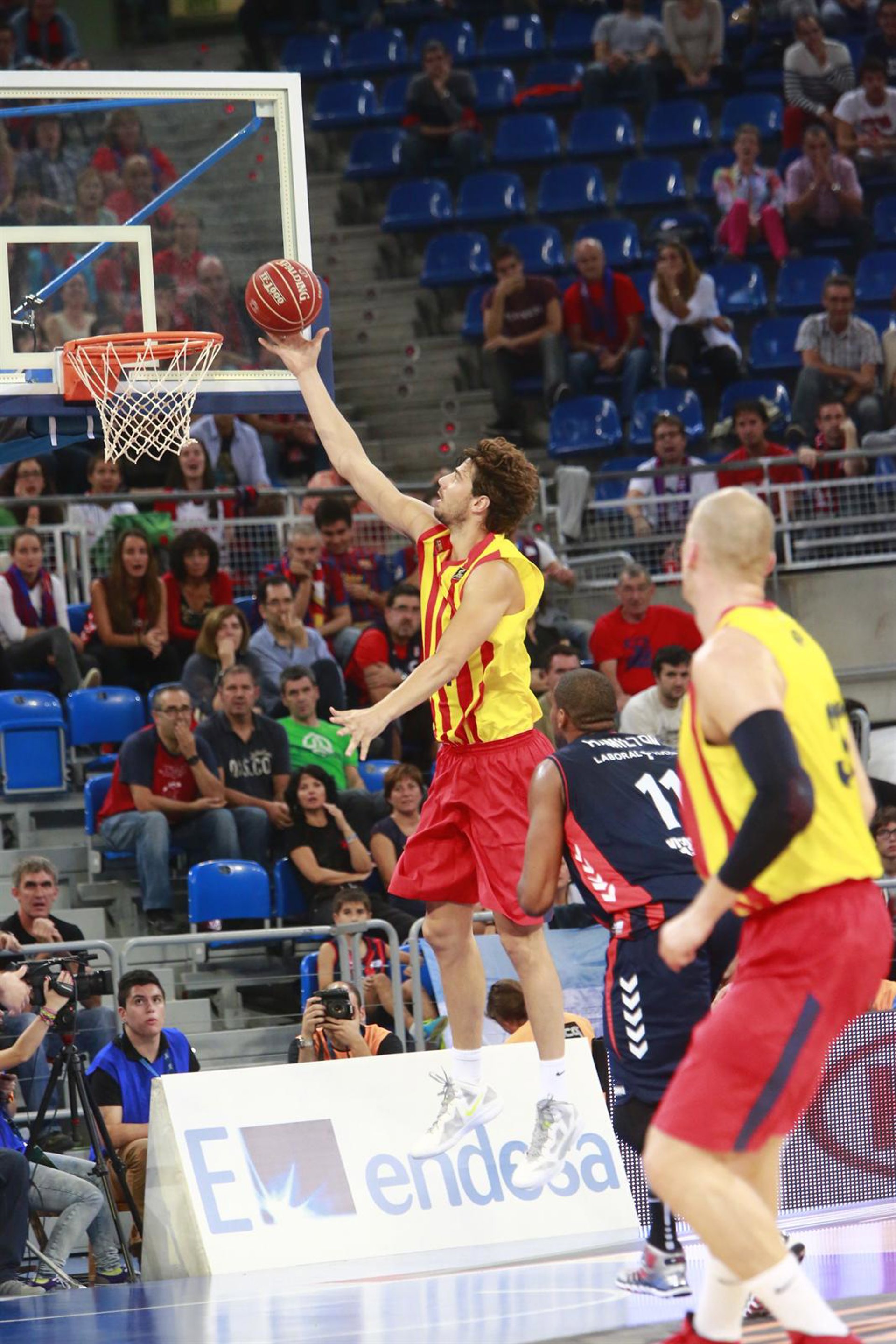 Sólo San Emeterio, en arranques personales, trató de reducir una desventaja inaccesible por el poder de la rotación del Barça, que a pesar de no contar con su capitán, Juan Carlos Navarro, arrasó sobre el parqué del Buesa Arena a un equipo local con mucho trabajo por delante.