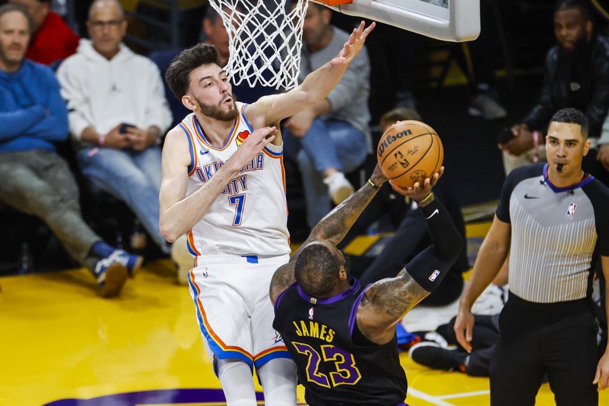 Archivo - Chet Holmgren y LeBron James durante un partido entre los Oklahoma City Thunder y Los Angeles Lakers. - Ringo Chiu/ZUMA Press Wire/dpa - Archivo