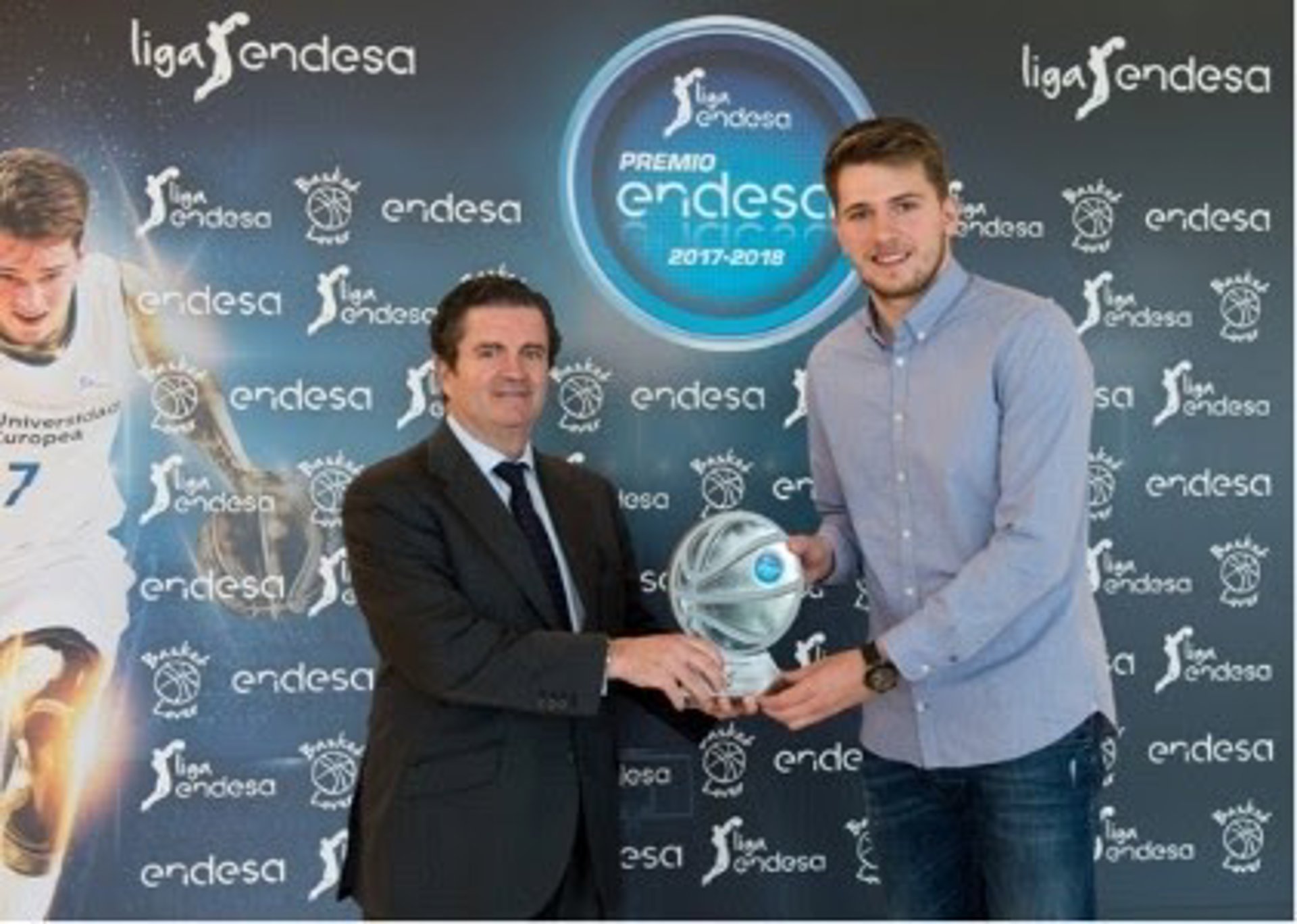 Doncic recibió el reconocimiento de manos del presidente de Endesa, Borja Prado, en la sede de la compañía en Madrid, donde explicó que "supone muchísimo" para él y destacando que "en todos los premios individuales tienen parte el equipo".