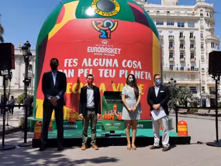 Ecovidrio ha colocado en la Plaza del Ayuntamiento de Valencia un contenedor de 8 metros de altura, que lucirá los colores de la selección femenina de baloncesto y el lema de la campaña, pensada para destacar la importancia del reciclaje de envases de vidrio en la lucha contra el cambio climático y la transición hacia una economía circular.