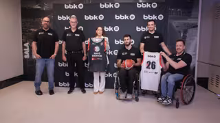 Archivo - Txema Alonso (segundo por la izda) durante un acto de patrocinio de BBK y el Bidaideak Bilbao BSR - BBK - Archivo