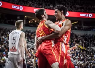 Brizuela y Sebas Saiz jugando con España - FIBA