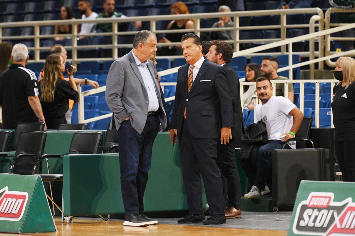 Archivo - Marshall Glickman, CEO del la Euroliga, charla con Vassileios Parthenopoulos, presidente del Panathinaikos - Stefanos Kyriazis / LiveMedia / AFP7 / Europa Pres
