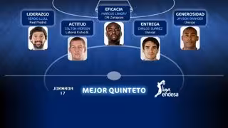 Sergio Llull (Liderazgo), Marcus Landry (Eficacia), Colton Iverson(Actitud), Jayson Granger (Generosidad) y Carlos Suárez (Entrega) conforman el mejor quinteto de la Jornada 17 de la Liga Endesa.