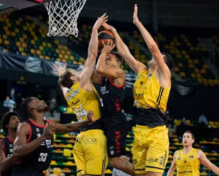 Apoyado en el dúo formado por Aaron Doornekamp y Gio Shermaidini, ambos con 12 puntos en el primer tiempo y con el primero con la muñeca fina desde el triple, y la buena dirección de Marcelinho Huertas (9 asistencias), el Iberostar Tenerife dominó el marcador ante un rival, que acusó las numerosas pérdidas y su mala noche en el tiro de tres.