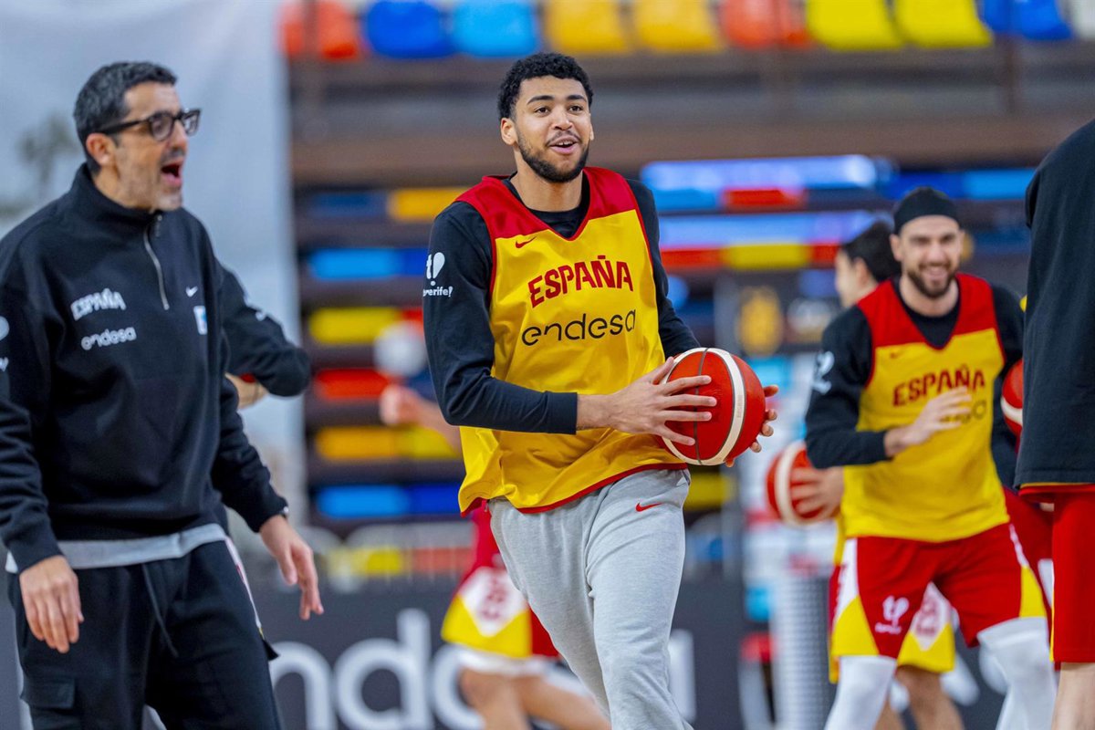 El ala-pívot Izan Almansa, durante un entrenamiento con la selección española de baloncesto. - FEB