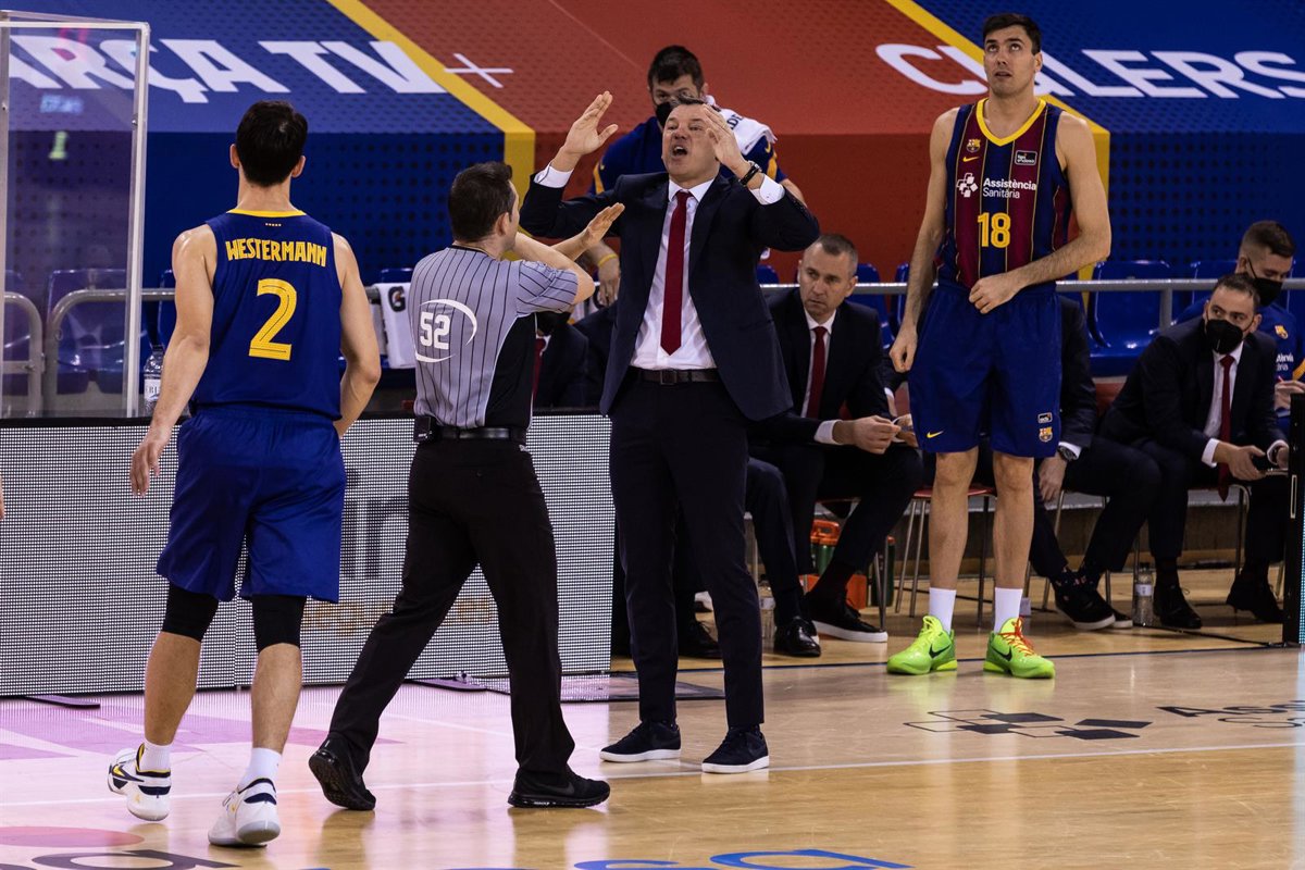 Sarunas Jasikevicius, Head coach of Fc Barcelona gestures during the Liga Endesa ACB, match between Fc Barcelona and UCAM Murcia at Palau Blaugrana on January 31, 2021 in Barcelona, Spain. - Javier Borrego / AFP7 / Europa Press