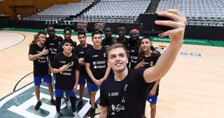 El jugador del Club Joventut Badalona Arturs Zagars en la acción One Team con la que el club ha sido premiado por la Euroliga - DAVID GRAU - Archivo