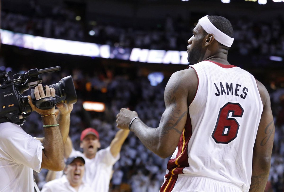 El alero LeBron James salvó a su equipo, Miami Heat, de verse sorprendido en el primer partido del 'play-off' final por la Conferencia Este por unos aguerridos Indiana Pacers, y con una canasta en el último suspiro dio la victoria a los actuales campeones por un ajustado 103-102 en la prórroga.
