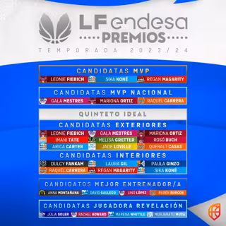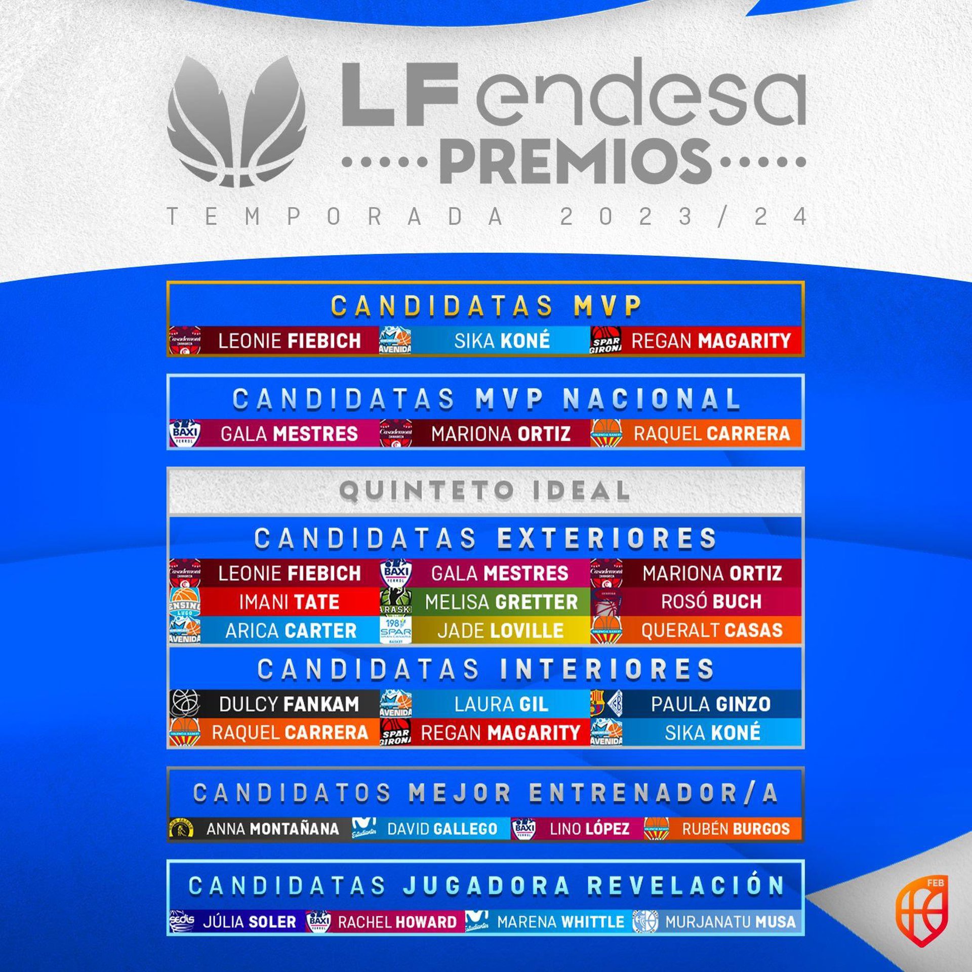 En el mejor quinteto de la competición, las candidatas a integrarlo son Leonie Fiebich, Gala Mestres, Mariona Ortiz competirán con Imani Tate (Durán Maquinaria Ensino), Melissa Gretter (Araski), Rosó Buch (Gernika), Arica Carter (Perfumerías Avenida), Jade Loville (Spar Gran Canaria) y Queralt Casas (Valencia Basket) como jugadoras exteriores. En el juego interior, Dulcy Fankam (IDK Euskotren), Laura Gil (Perfumerías Avenida) y Paula Ginzo (Bara CBS) se unen a Raquel Carrera, Sika Koné y Regan Magarity como candidatas a entrar en el mejor equipo de la temporada.
