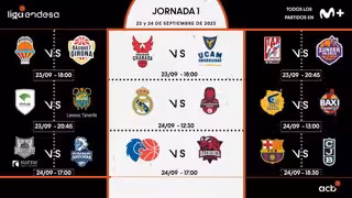 La Liga Endesa arrancará así el 23 de septiembre con cuatro partidos (Valencia Basket-Bàsquet Girona, Coviran Granada-UCAM Murcia, Monbus Obradoiro-Zunder Palencia y Unicaja-Lenovo Tenerife) y cerrará esta primera jornada un siempre interesante derbi catalán entre Barça y Joventut, con el fichaje del Barça Joel Parra ante su antiguo equipo.