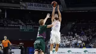 El balear firmó cuatro triples en el tercer cuarto y dejó atrás a un Unicaja que no dejó de pelear en busca del 'Top 8'. A pesar de encajar 31 puntos, el cuadro andaluz obligó a mantener el pie en el acelerador a los blancos, quienes sellaron de manera matemática su presencia en la Copa del Rey de Granada.