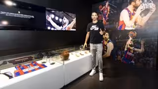 Navarro, junto al directivo responsable de la sección de baloncesto, Joan Bladé, y el director del Museo, Jordi Penas, ha sido la estrella en la puesta de largo, en la segunda planta, de un recinto dedicado a él que permanecerá abierto hasta el próximo verano.
