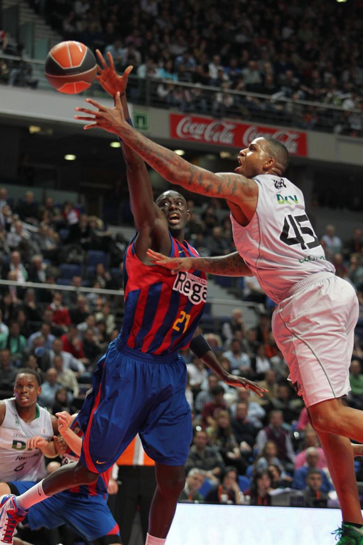 El Barça propinó un golpe importante a su vecino verdinegro al inicio del segundo cuarto, cuando saltó a la primera línea de fuego un inspirado Boniface Ndong, que terminó siendo el máximo anotador del choque con 18 puntos. El africano convirtió la pintura en su jardín particular: sembró jugadas, plantó mates y hasta se tiró a recolectar algún balón suelto. Tres canastas sucesivas con su firma sellaron un parcial de 8-0 y la máxima renta de su equipo en la primera parte (37-25, min.16).