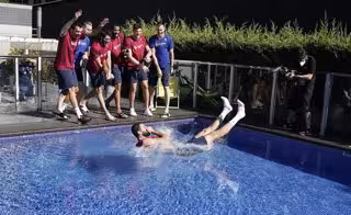 "Se puede ver en mi cara, en mi sonrisa. Ha sido una buena sorpresa, me ha alegrado el día", declaró Mirotic, que fue sorprendido este sábado por la plantilla en la terraza del hotel de concentración; Mirotic se encontró con sus compañeros y Ante Tomic y Pierre Oriola, capitanes del equipo, le entregaron el MVP Movistar de la temporada entre cánticos de "MVP, MVP". Tras ello, los jugadores le lanzaron a la piscina para celebrarlo.