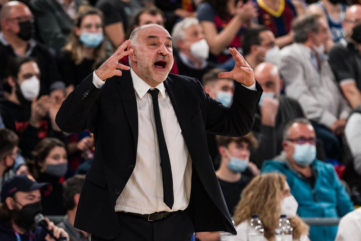 El entrenador del Real Madrid, Pablo Laso, durante el partido ante el Bara de Liga Endesa 2021-2022 en el Palau. - Javier Borrego / AFP7 / Europa Press