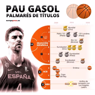 Finalmente, en la considerada mejor liga del mundo también supo convertirse en uno de sus jugadores más destacados e hizo historia en 2009 al convertirse en el primer español en ganar el anillo de campeón. Lo hizo con Los Angeles Lakers y junto a su amigo Kobe Bryant, con el que repetiría un año después. Además, fue elegido 'Rookie del Año' en 2002 jugando para Memphis Grizzlies y participó seis veces en el 'All Star'.