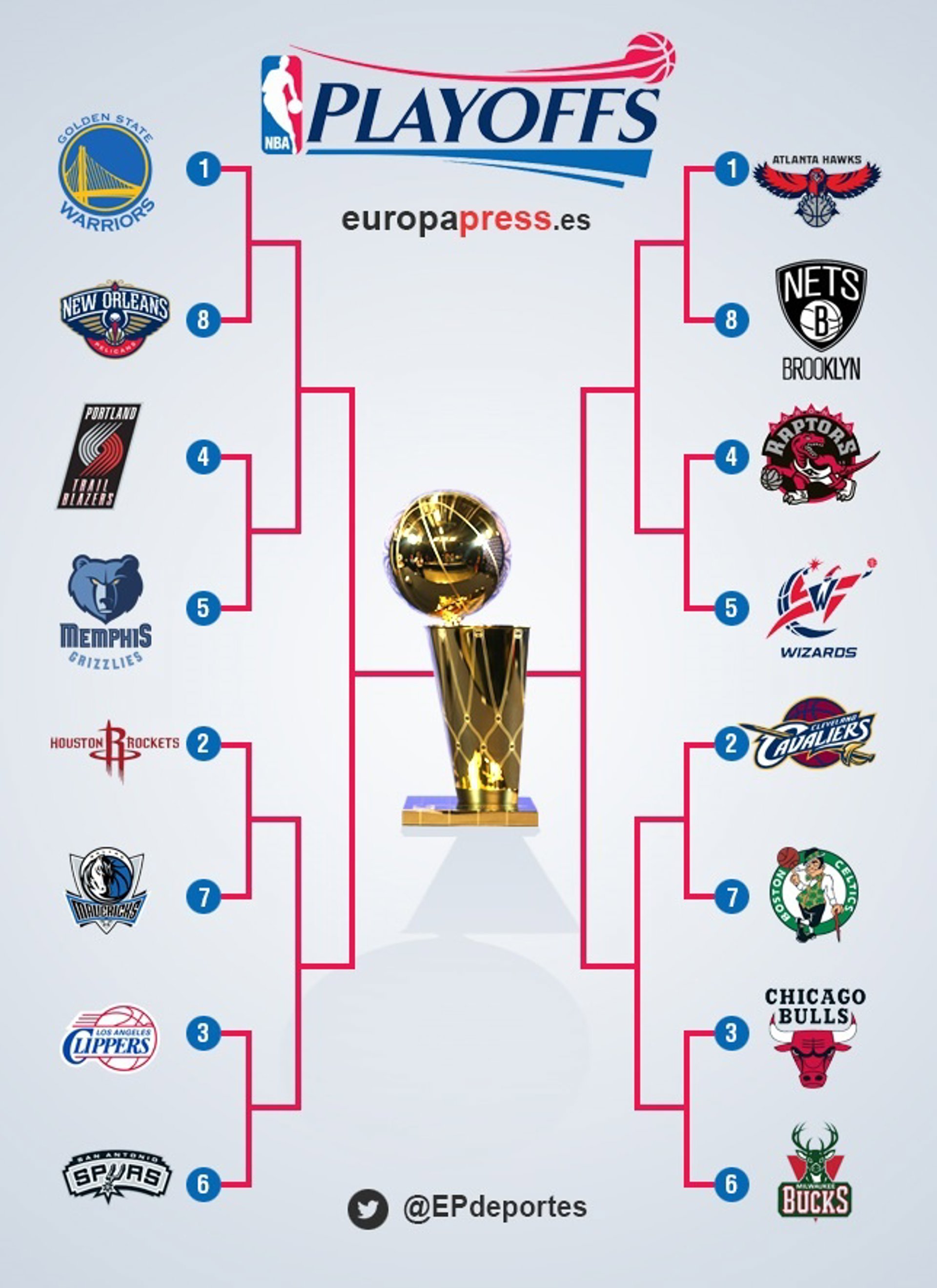 Los Chicago Bulls de Pau Gasol y Nikola Mirotic se enfrentarán en la primera ronda de los 'play-offs' por el título ante los Milwaukee Bucks, mientras que los Memphis Grizzlies de Marc Gasol iniciarán su camino ante los Portland Trail Blazers, en una postemporada en la que las eliminatorias Houston Rockets - Dallas Mavericks y Los Angeles Clippers - San Antonio Spurs aparecen como las más atractivas.