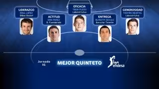 Los jugadores Raül López (Liderazgo), Tibor Pleiss (Eficacia), Dani Pérez (Actitud), Thomas Heurtel (Generosidad) y Blagota Sekulic (Entrega) conforman el Mejor Quinteto Liga Endesa de la Jornada 16, disputada este fin de semana.