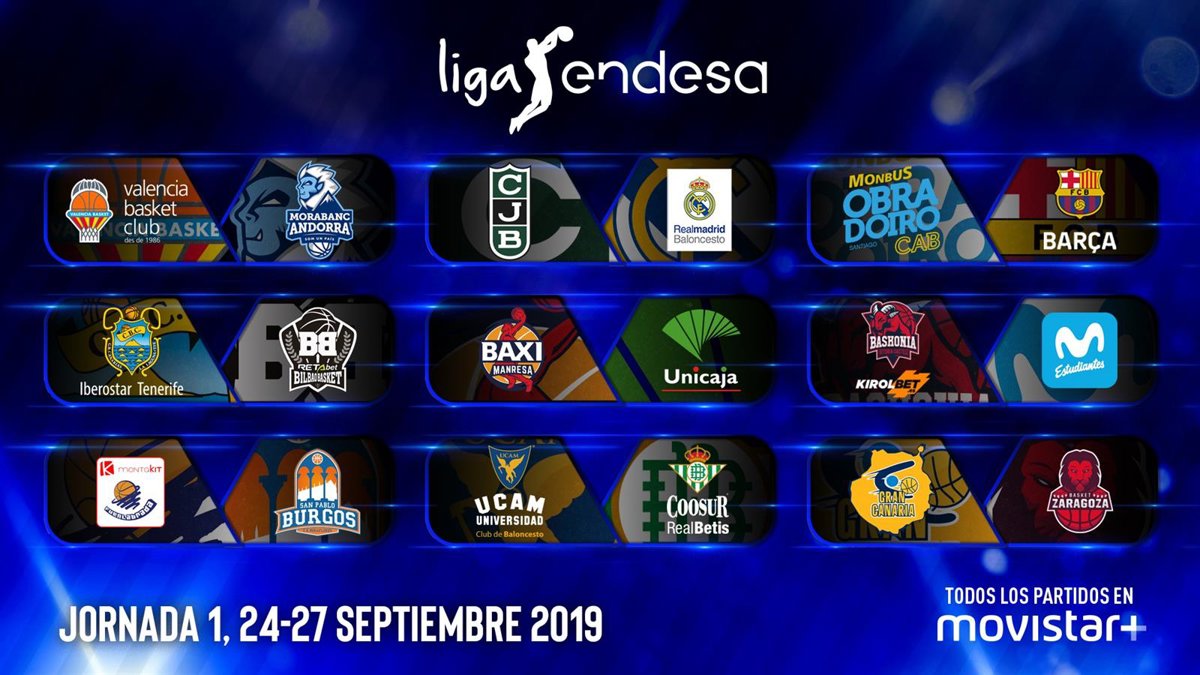 La temporada 2019/20 de la Liga Endesa arrancará con seis días consecutivos de baloncesto, una doble jornada que empezará este martes y concluirá el próximo domingo, y el Real Madrid abriendo la defensa de su corona en Badalona frente al Joventut.
