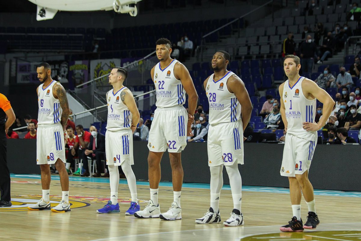 Adam Hanga, Thomas Heurtel, Walter Samuel Tavares da Veiga, Guerschon Yabusele and Fabian Causer of Real Madrid look on during Turkish Airlines Euroleague basketball match between Real Madrid and A.S. Monaco at Wizink Center on October 13th, 2021 in Mad - Irina R. Hipolito/AFP7 / Europa Press