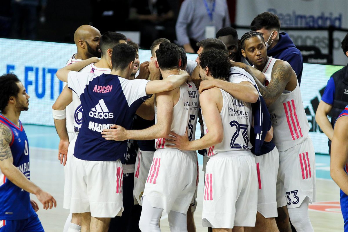 Jugadores del Real Madrid celebran la última victoria ante el Efes en Euroliga - Irina R. Hipolito/AFP7 / Europa Press