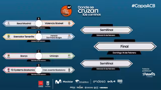 Real Madrid-Valencia Basket, Barça-Unicaja, Iberostar Tenerife-Hereda San Pablo Burgos y TD Systems Baskonia-Joventut Badalona son los emparejamientos en la Copa del Rey de baloncesto, que se disputará en el WiZink Center de Madrid entre los días 11 y 14 de febrero.