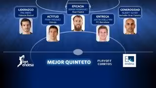 Pau Ribas (Liderazgo), Sergio Rodríguez (Eficacia), Fran Vázquez (Actitud), Albert Oliver (Generosidad) y Justin Doellman (Entrega), conforman el Mejor Quinteto de los cuartos de final del 'play-off' de la Liga Endesa.