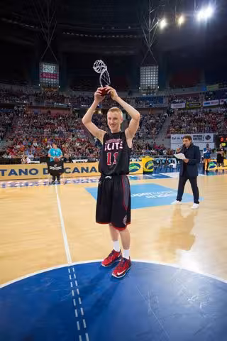 El estudiante de instituto de Illinois, que cuenta con el récord Guinness de 135 triples anotados en cinco minutos, llegó a Vitoria con la intención de defender su corona y lo logró con mayor solvencia aún que el año pasado.