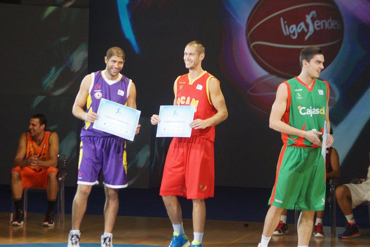 Los jugadores Tomas Satoransky (Cajasol), Panagiotis Vasilopoulos (Valladolid) y Kim Tillie (UCAM Murcia) se han adjudicado este martes el torneo 3x3 entre estrellas de la Liga Endesa, disputado en un ambiente distendido en el Polideportivo Antonio Magariños con motivo de la presentación de la temporada 2013-14.