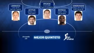 Los jugadores Luke Sikma (Liderazgo), Kyle Kuric (Eficacia), Sergio Llull (Actitud), Rodrigo San Miguel (Generosidad) y Joseph Jones (Entrega) conforman el Mejor Quinteto Liga Endesa de la Jornada 29.