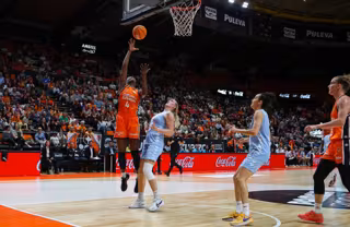 Además, Perfumerías perdió (70-62) ante el Joventut para ser tercera y medirse ahora con un Estudiantes al que superó con dificultad en la Copa de la Reina pero que falló con estrépito en la última jornada contra el Casademont Zaragoza (81-48).
