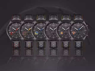 Con una gran caja de 45 mm para una buena legibilidad, el diseño de estos modelos dedicados a seis equipos de la NBA -Lakers, Bulls, Cavaliers, Warriors, Knicks y Spurs- está lleno de detalles, como los índices transparentes sobre esfera negra, una combinación que resalta el logo y los colores de la correa.