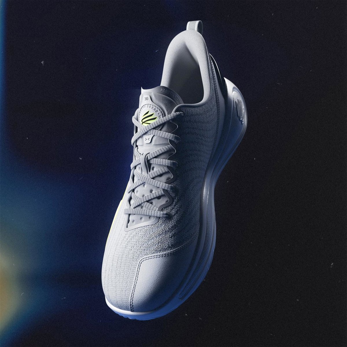 Para ilustrar esta atracción invisible, las Curry 12 'Gravity' presentan una parte superior limpia en gris claro con un toque de verde y negro en la pared lateral de TPU, diseñado para emular partículas flotando en el universo.